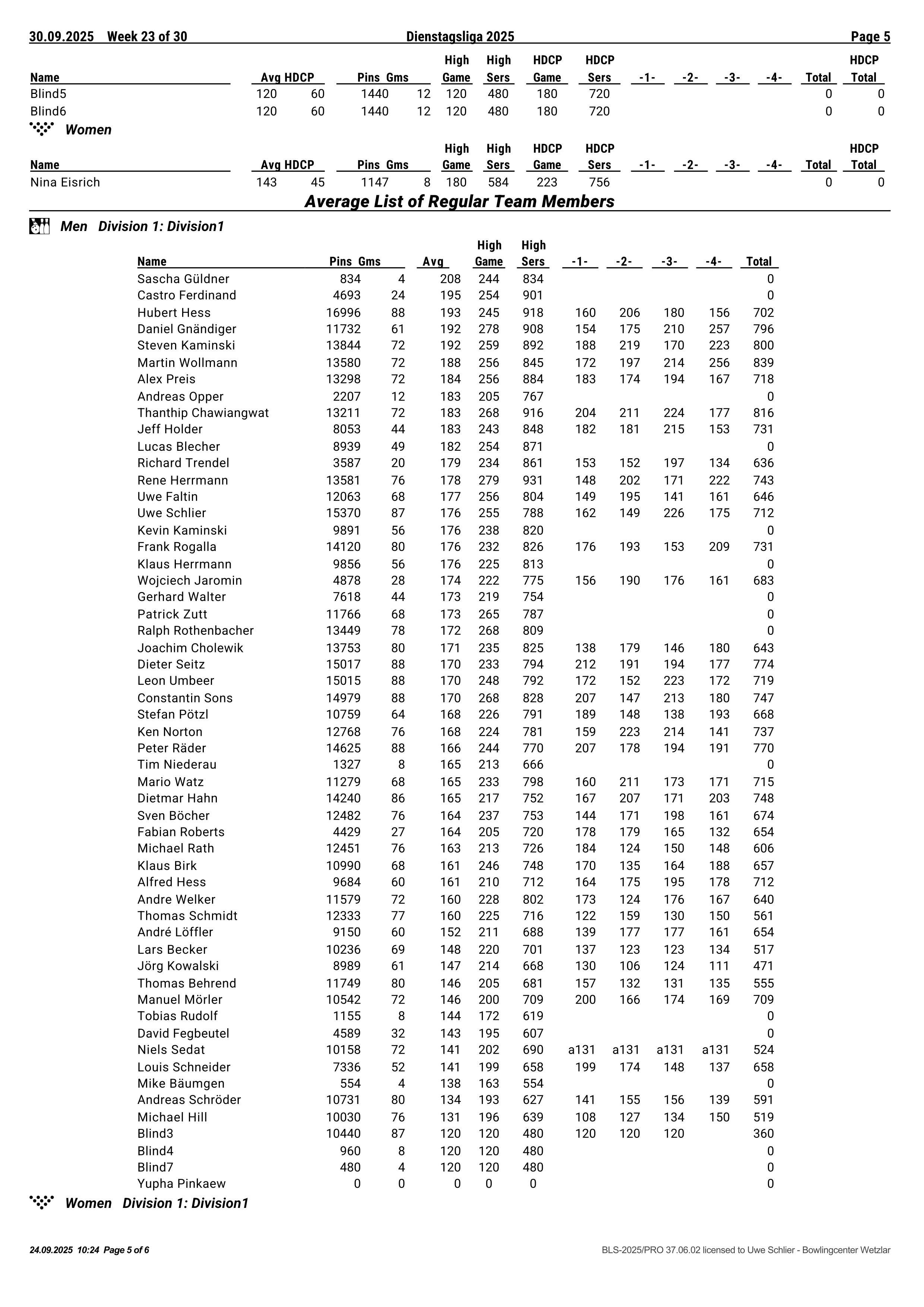 17 Spieltag 860 Pin, Schnitt von 215,0 Pin, Höhstes Spiel 233 Pin
